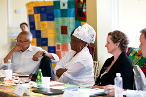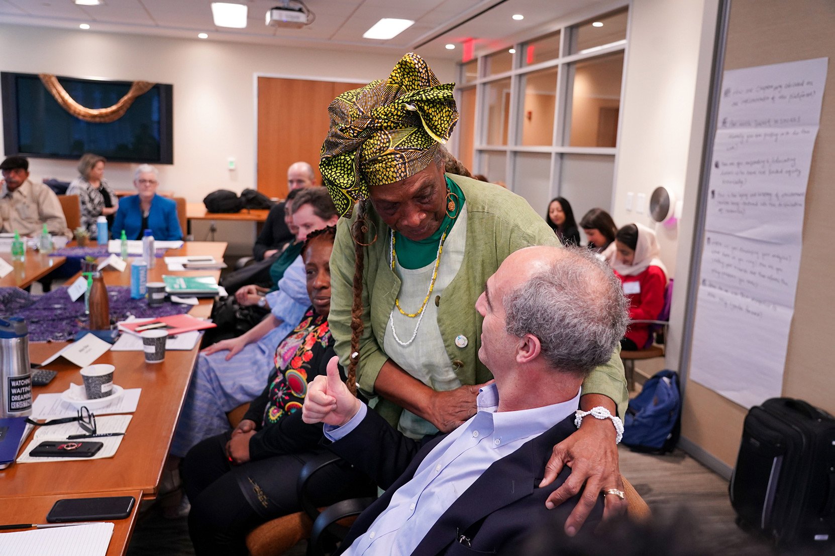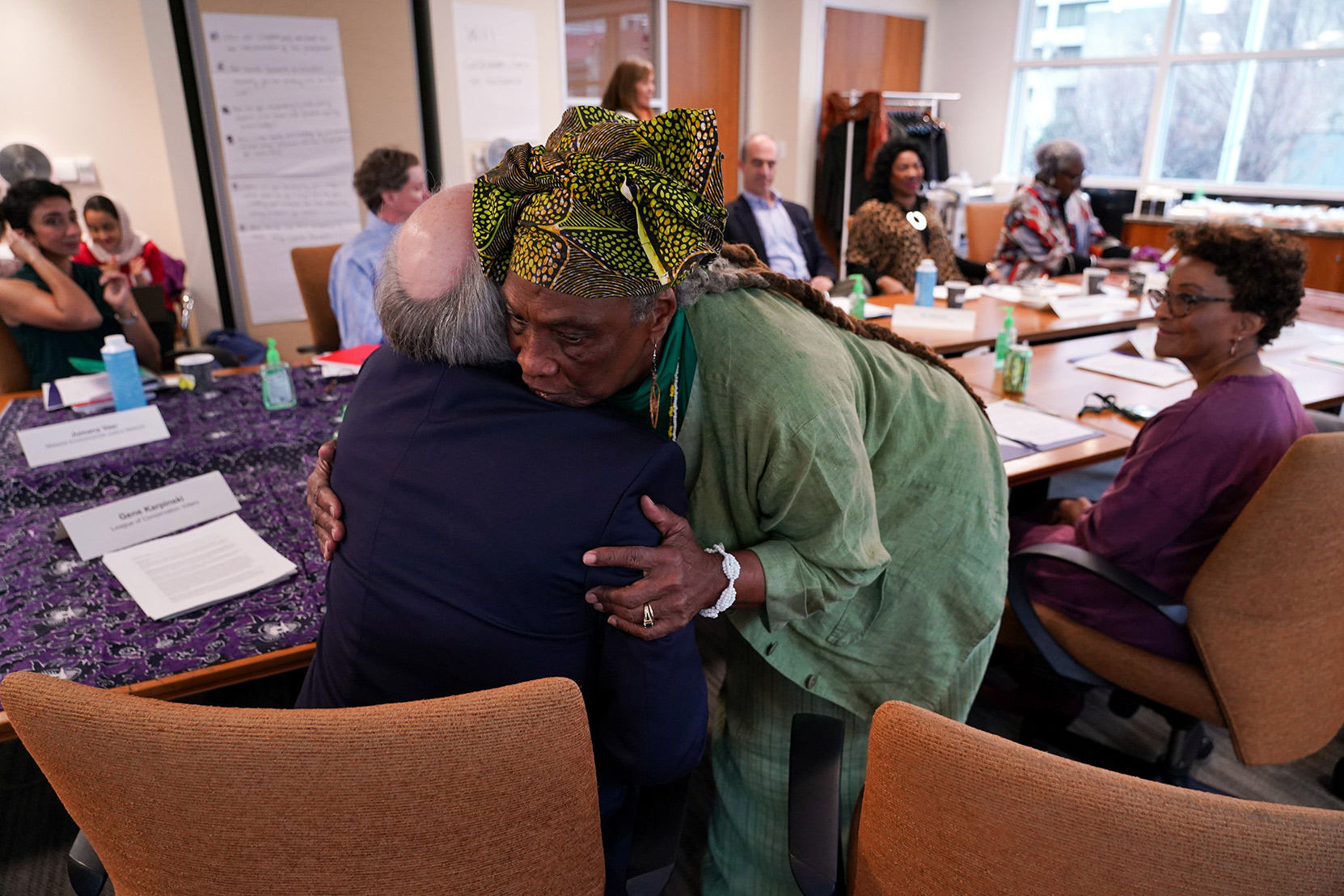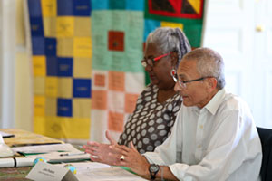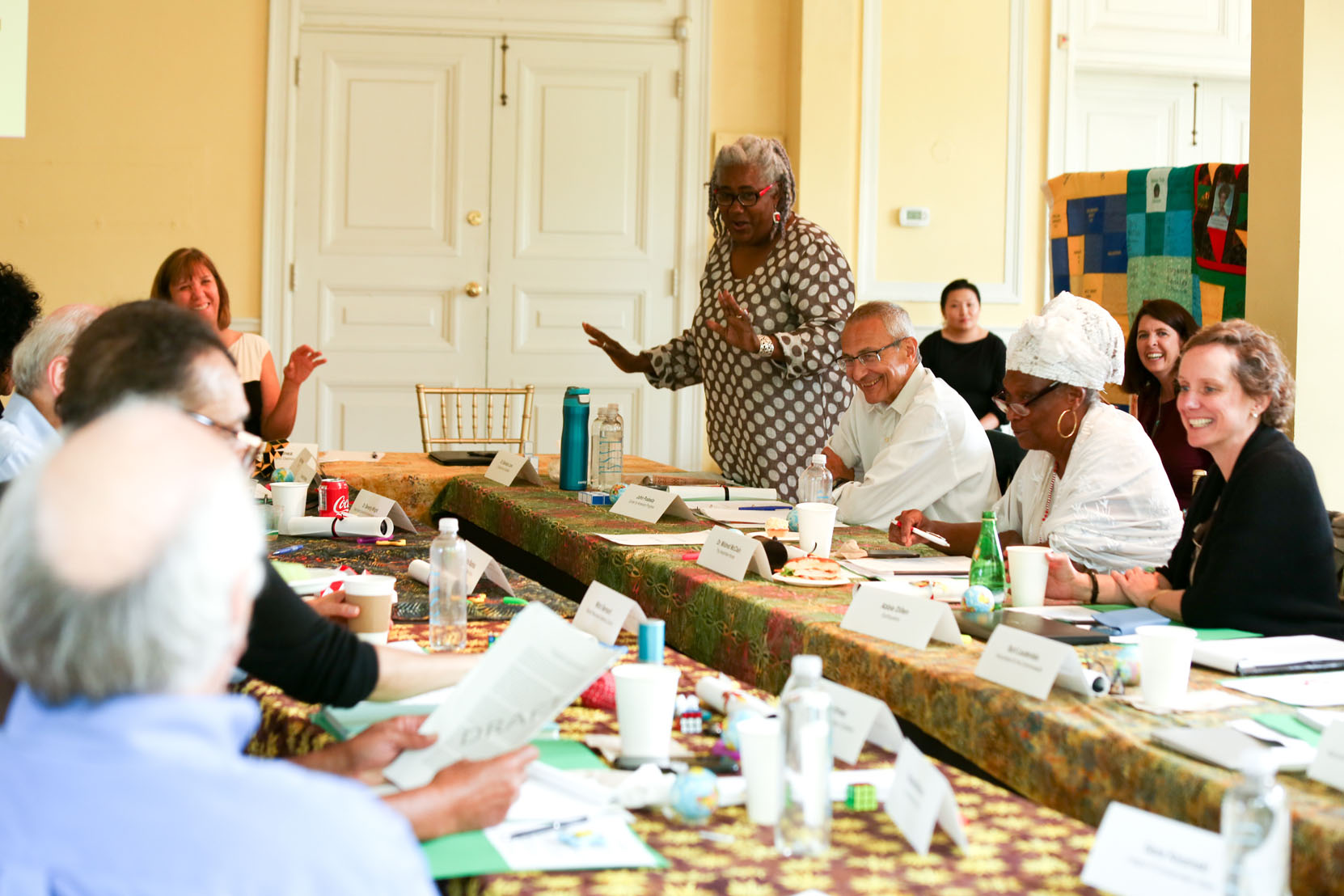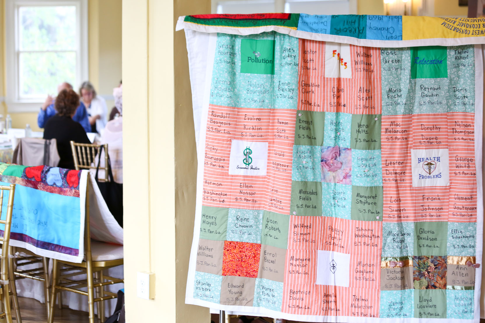 Environmental justice elders and advocates as well as national environmental group CEOs and senior staff gather at the Climate Forum in Washington, D.C., on June 18, 2019. The quilt, pictured at the top of the page, was presented at the First National People of Color Leadership Summit in 1991 in memory of people who died from exposure to disproportionately high levels of toxic pollution in their communities.