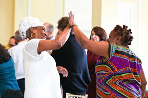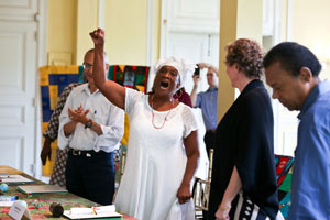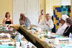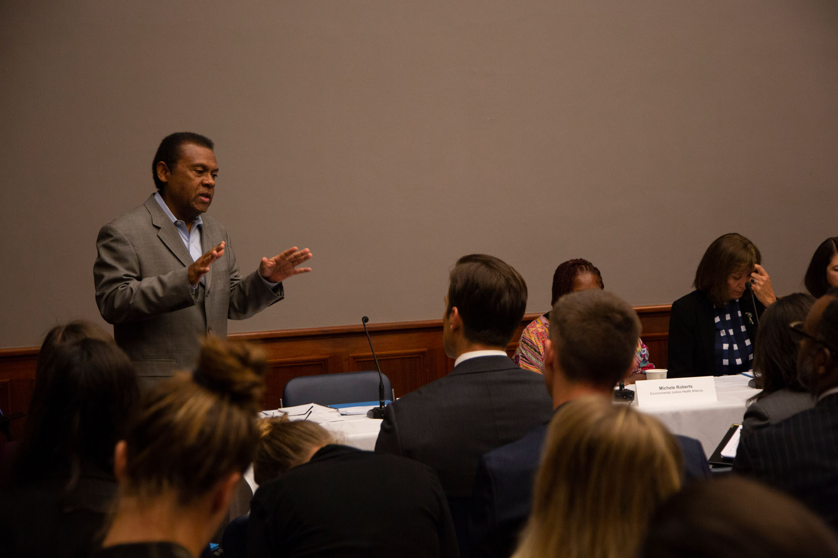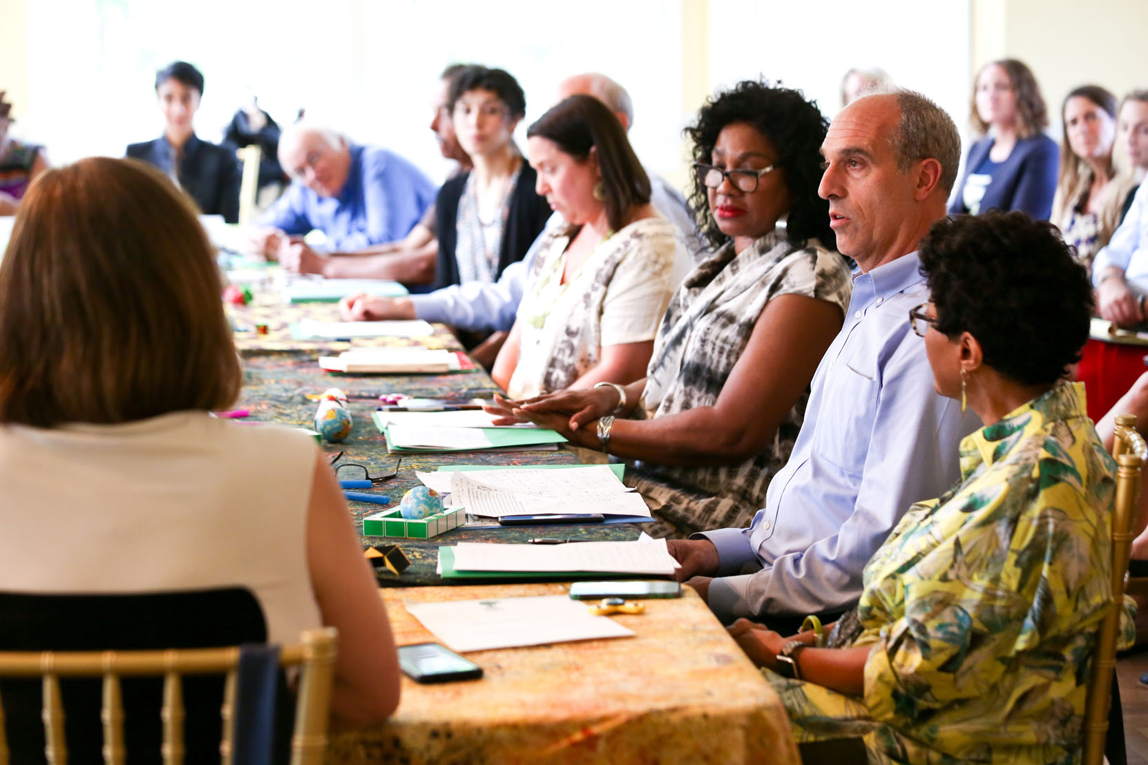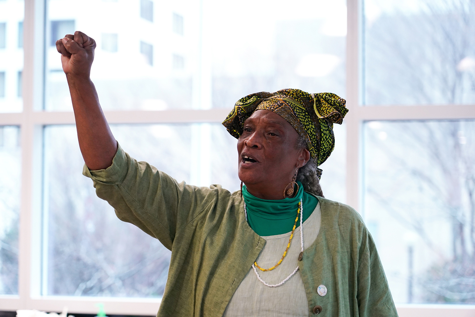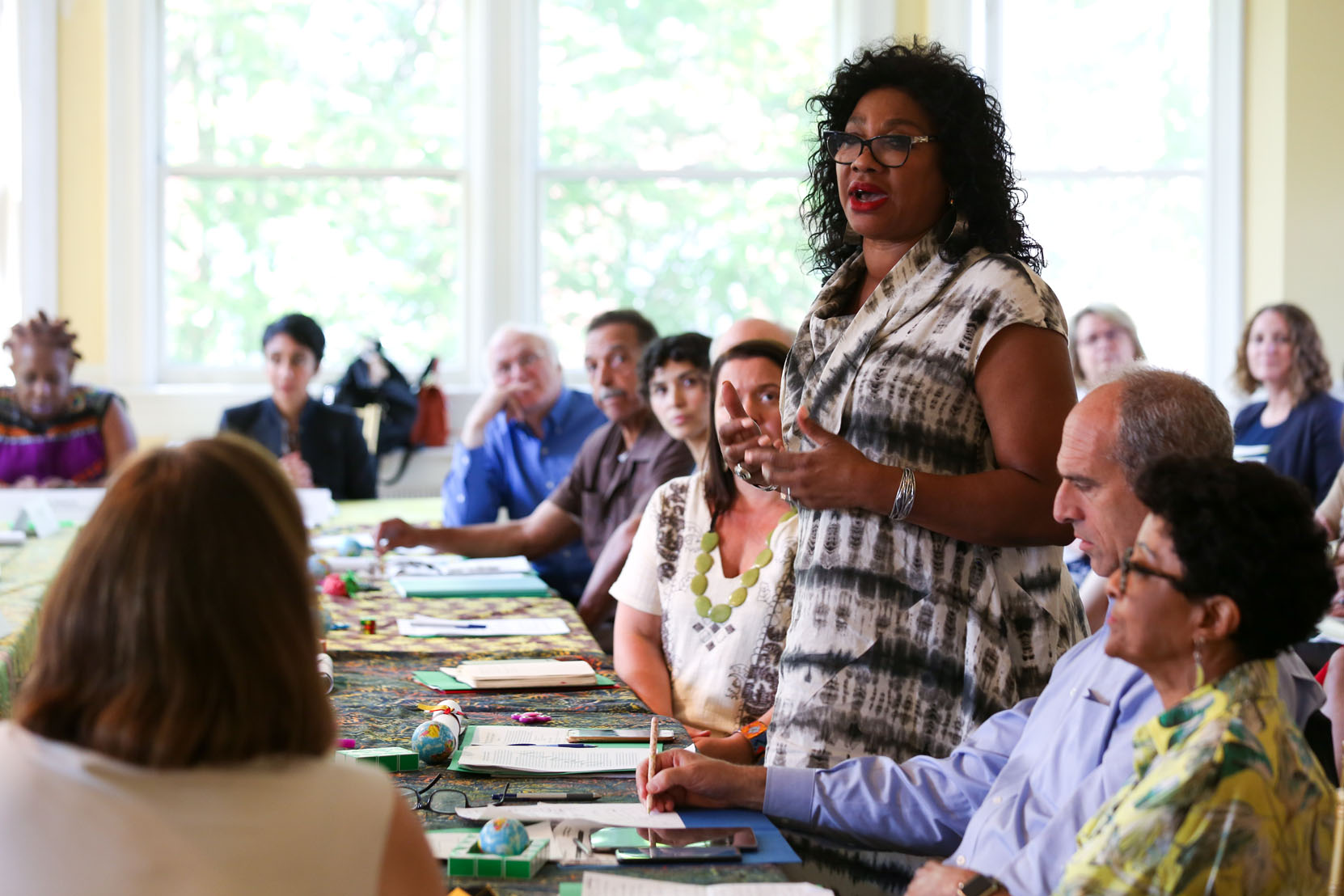 Environmental justice elders and advocates as well as national environmental group CEOs and senior staff gather at the Climate Forum in Washington, D.C., on June 18, 2019. The quilt, pictured at the top of the page, was presented at the First National People of Color Leadership Summit in 1991 in memory of people who died from exposure to disproportionately high levels of toxic pollution in their communities.